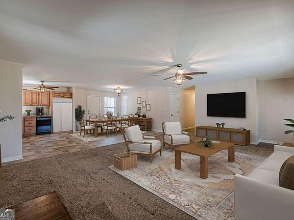 Price Improvement Below Market Value. Welcome home to Peaceful Country living in the highly sought-after South Paulding community. This beautifully maintained property sits on 1.5 private acres offering the perfect mix of modern comfort, outdoor space, and everyday convenience, with no HOA. The open-concept layout creates a warm, welcoming flow from the spacious family room into the dining area and a light-filled kitchen featuring custom cabinetry, granite countertops, and plenty of prep space. Just off the kitchen, an oversized laundry room provides additional storage and space for a second fridge or freezer. Down a wide hallway, you'll find three generously sized bedrooms, including a private owner's suite with a large ensuite bath-designed for rest and relaxation. Enjoy quiet mornings on the rocking chair front porch or entertain on the back deck overlooking a fenced area-perfect for pets and outdoor living. The property also includes a large pole barn ideal for RV, boat, or equipment storage, and a full unfinished basement with a boat door, offering room for a workshop, additional storage, or future expansion. Located minutes from Dallas, Hiram, and Villa Rica-with quick access to shopping, dining, hospitals, and top-rated schools-this home offers both convenience and privacy. Don't miss the opportunity to make this special property your own. Schedule your showing today!
