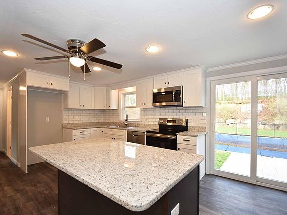 - Kit Dscrp: Main Level, Ceiling Fan(s), Countertops - Stone/Granite/Solid, Cabinets - Upgraded, Kitchen Island, Stainless Steel Appliances, Open Floor Plan, Recessed Lighting, Flooring - Laminate, Remodeled, Slider, Crown Molding