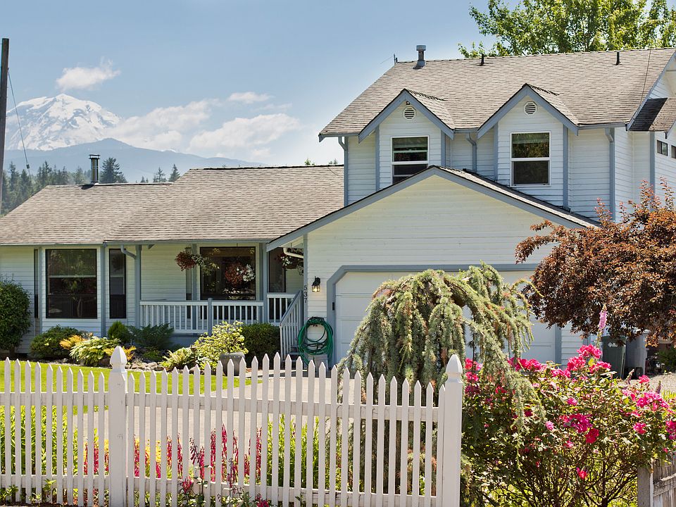 Beautiful Mt Rainier view 4 bedroom 2.5 bath home on over a 1/2 acre of beautifully manicured yard gardens and fruit trees, covered patio gas outside gas fireplace, great for entertaining, 24 x 30 detached Garage/shop, RV parking and hook up.