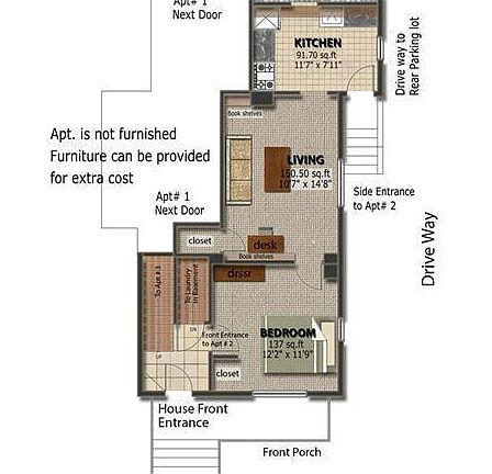 One large Bed Room and big living Rm, 2 separate entrances to the apartment for extra convenience,