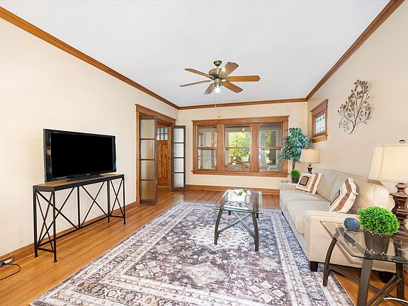 Live in the heart of Oak Park on an absolutely gorgeous block. This beautifully maintained 3-bedroom, 2.5-bath American 4-Square has all the Oak Park charm and has been lovingly maintained and cared for. Original oak trim, stained glass windows, and gorgeous wood staircase showcase its timeless character, while a finished basement with full bath and a first-floor powder room add comfort and function. Easy for friends and family to visit and have their own space downstairs. A/C for those hot August days. Relax in the enclosed porch year-round or step into the backyard-perfect for gardening, entertaining, or simply enjoying the outdoors. Thoughtful updates, including newer windows and an induction oven, blend seamlessly with the home's classic stucco exterior. All of this in a prime location near The Oak Park Arts District. Walk to shops (Vals Hala,Purple Sun Arts), dining (Taco Mucho, Happy Apple Pie) and both the Green Line and Blue Line CTA stops. This is an unbeatable location delivering the lifestyle and convenience that make Oak Park so desirable.