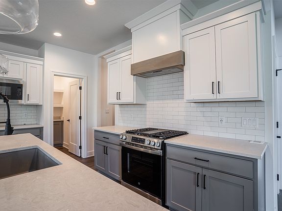 Welcome to Walnut Woods Estates! This gorgeous 1.5 story walkout home offers over 2,576 sqft of finish An open floor plan showcases a multitude of windows for great natural light! Relax in the spacious great room w/dramatic 17’ high ceilings. The cook of the kitchen will appreciate the walk-in pantry, deluxe gas range, center island & dining area. All this is accessible to the 12x15 covered deck w/stunning views of the backyard.. Retreat to the primary suite w/a beautiful spa like bathroom. Two laundry rooms with one on the main floor & additional laundry room on the 2nd floor. Spacious flex room perfect for office, music, formal seating area, or play. Stay organized w/drop zone room with bench & 1/2 bath off the 3 car garage entry. An open loft on the 2nd level offers 3 additional bedrooms w/full bath. Ran or shine enjoy the covered front porch. Exterior Hardiplank siding & irrigation are a few more amenities awaiting the homeowner!. Veterans Pkwy entrance from the north and the south make any commute smoother. Make this gem your next Home Sweet Home!