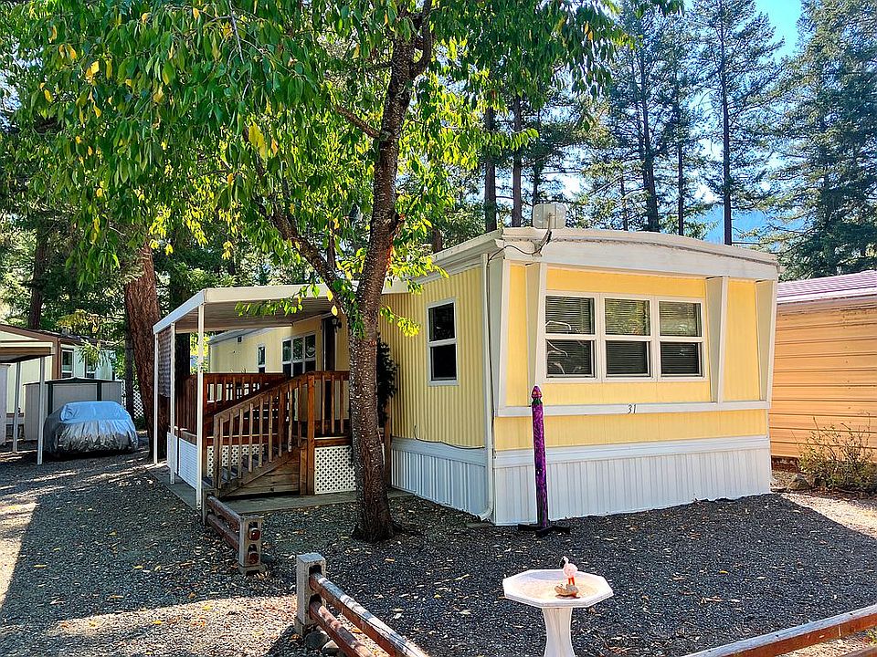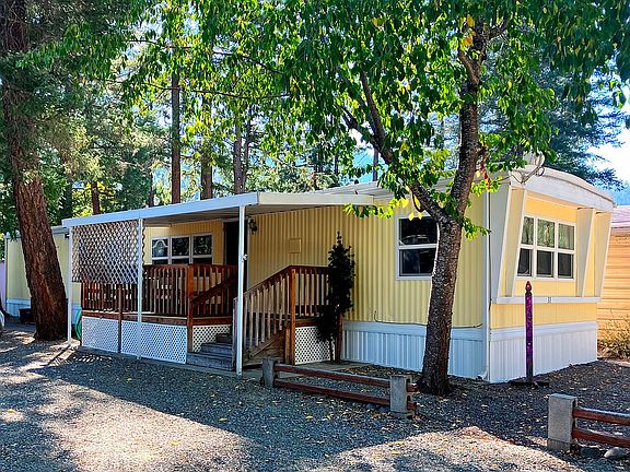 Classic 1965 Kirkland Mobile home with many updates. Move-in ready.The home, in the Applegate Mobile Home park for 55 & older, is truly a park like setting. Located 1/2 mile from the Applegate Lodge. Nestled in the trees, a short walk to the Applegate River, with Thompson creek flowing through the back of the property. A quiet, friendly, safe and peaceful and desirable place to live. Spacious, with an open floor plan. Nice full size kitchen and dining area with updated refrigerator, stove and dishwasher. Bright dining area, plenty of cabinets. The home has many updates including; Newer Heat Pump, central heat and air, water heater, washer, dryer, dishwasher, updated appliances, wall to wall quality carpeting, new energy efficient windows, insulated floor and newer roof. The home has been re-leveled and has new skirting. There is plenty of parking on the tree studded lot. There is a mature, bearing cherry tree in the front yard. The home and lot is move-in ready. Well maintained and recently painted inside and out. A nice, newer cedar covered deck. There is a carport and two storage sheds. Located 1/4 miles off of Hwy 238, between Jacksonville and Grants Pass in the beautiful Applegate Valley. The lot rent is only $445 per month and includes water, sewer, garbage, and cable TV service. *Must be approved by park manager *Pet policy: One small dog or cat Available move in date: 12/31/22 Home size: 16’X54’ - 864 sq ft Lot size: 100 X 50 - 5,000 sq ft
