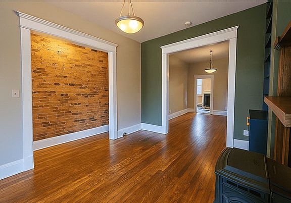 Spacious bedroomsUnique woodworkArchitectural charmLight and bright kitchenCovered front porchExposed brickCentral heating and air