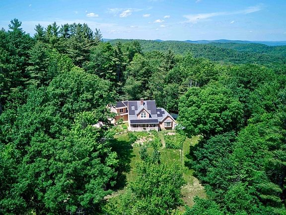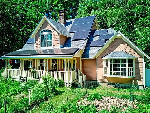 Enchanting and virtually net-zero energy efficient home in a tranquil private setting. Enjoy lovely sunsets from the farmer’s porch. Gracious first floor bedroom suite, bath with deep soaking tub. Huge windows light up fireplaced living room, and adjoining dining area opens French doors to porch. Lofty skylighted family room (or art studio) soars to a vaulted ceiling. Graceful walnut staircase ascends to two more bedrooms and bath. Granite/stainless cook’s kitchen offers quaint brick details and abundant cabinetry. Adjacent mudroom opens to a short walkway leading to heated bonus room above the two-car garage, and access to the the fully fenced backyard for your pets. In summer, pollinator gardens glory in colorful blossom, with veg, herb,and perennials. Surrounded by hundreds of acres of woods and close to Chapel Falls and the DAR State forest, minutes away from Ashfield center, with its lively cultural scene of arts and festivals and Ashfield Lake. See aerial video for more info.