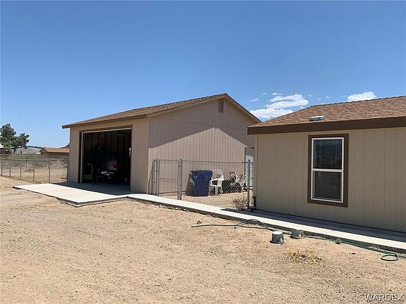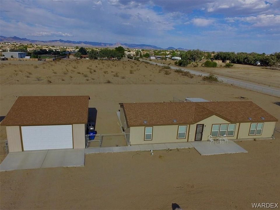 Corner Lot Home on over an acre in Fort Mohave! Newer 2015 3 bedroom, 2 bath plus den home features split, open floor plan, ceiling fans, vaulted ceilings, kitchen island with Breakfast bar, utility room and French doors leading out back. Corner lot property sets on 1.2 acre and fully fenced front and back yard with a private dog run, private well, larger septic tank, and plenty of parking for all your toys. Detached 24x28 garage with 9ft door, laundry hookups with separate water heater, RV hookups, clean outs and water tank for extra storage. Property also has horse privileges. County Living with plenty of room for all the toys and very close to Shopping, the River and Casinos.