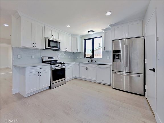 Remodeled 4-bedroom, 2-bathroom single-family home located on a quiet interior corner lot in the desirable Garden Grove School District. Features a 2-car garage (plus 3 driveway spaces) with washer and dryer hookups, brand-new windows, fresh paint, and updated flooring throughout. The remodeled kitchen includes quartz countertops and modern finishes. The home offers an extended living area that can be used as an office or den. A lovely wraparound yard flows from the side gate to the backyard, highlighted by mature fruit trees including avocado, orange, and lemon, a true gardener's delight for those who enjoy tending to plants and harvesting their own fruit.
