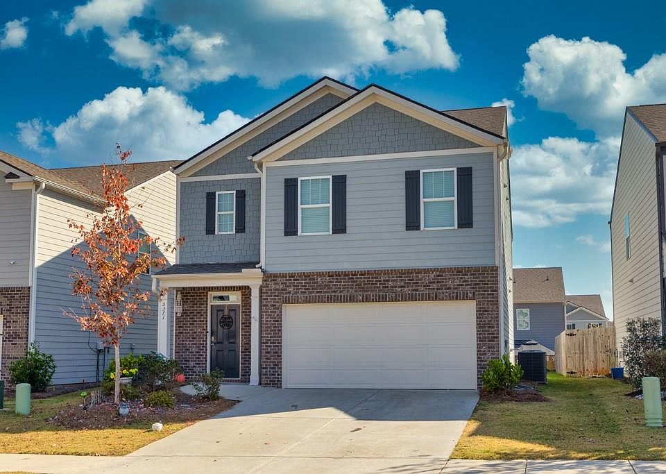 Welcome to this ample 5 bedrooms, 3 full bathrooms home. Great Kitchen features granite countertops, gas stove, white cabinets, ss appliances, and large WIC pantry. Kitchen overlooks family room with fireplace. Main living area has distressed wood look flooring. Guest bed on main with full bath. Second floor loft space, perfect for entertaining! Convenient upstairs laundry! Spacious owner's suite with large 5' shower, sep. tub, and walk in closet. There are 3 secondary bedrooms upstairs. Community features pool, cabana, and playground.