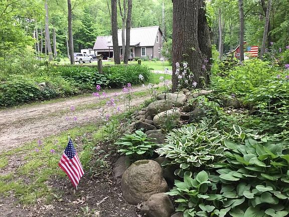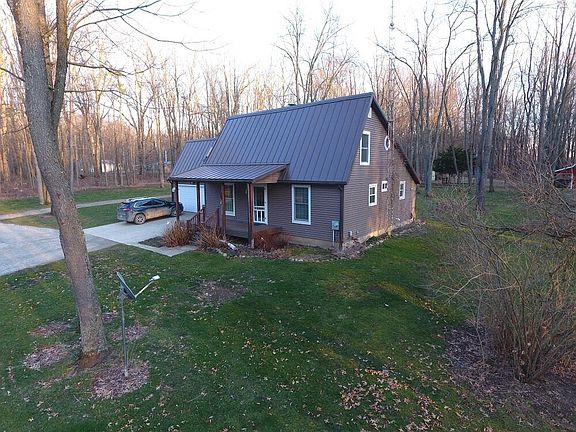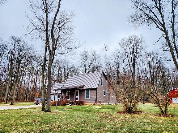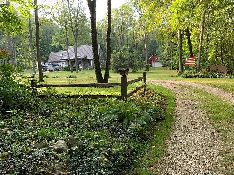 Picture perfect homestead! This chalet-style home is nestled on almost 10 acres, just a few minutes from town. Knotty pine, vaulted ceilings, and beautiful views from the kitchen & dining room! Bonus room over the garage could be an office, rec room, or 4th bed. Recent updates include metal roof (5yrs), all new windows, new well (2 yrs), and far more - too many to list! Full, dry basement (part finished) with workshop area. Main floor laundry & master bed/bath. Acreage is mostly wooded with trails throughout; plenty of wildlife and even some wild cherry trees! 32x48 newer barn with cement floor & 2nd floor for storage. 2nd barn has 2 stables & tack room/chicken coop. Fencing will stay. Much more to see, very nicely remodeled & very well maintained! Subj to seller finding suitable housing