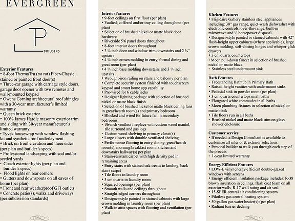 Welcome to Evergreen in Lakeland! This stunning new construction by TP Builders is designed for modern living w/energy-efficient features & high-end finishes. The home will showcase a queen brick exterior w/James Hardie masonry trim, 8-ft ThermaTru front door & a three-car garage w/carriage-style doors. Inside, enjoy 9-ft ceilings, vaulted & coffered designs, 8-ft interior doors & a ventless gas fireplace. The kitchen features Frigidaire Gallery stainless appliances, 42” designer cabinets, soft-close drawers & 3 cm quartz countertops. The primary suite offers a freestanding tub, tile shower w/glass enclosure & custom wood shelving in the closet. Additional highlights include a smart home security system, designer lighting, quartz in all baths & laundry & R-38 attic insulation w/foam-sealed exterior walls. Located in the sought-after Evergreen subdivision, this home blends timeless craftsmanship w/modern convenience. Buy now & personalize! Builder Incentives Available.