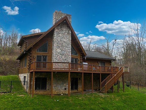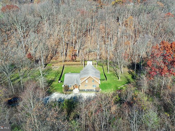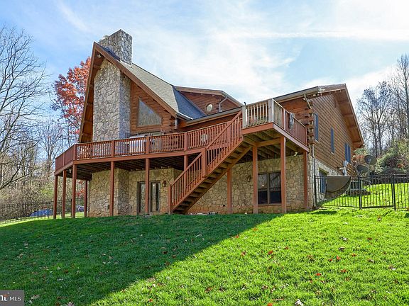 PRIVACY, PRIVACY, PRIVACY. Log Chalet retreat on 16 peaceful acres. Featuring a long private lane, creek, and trails for riding, hunting, etc! Just minutes to the PA/MD line. This wooded retreat features a bright open layout with gorgeous woodworking throughout, a grand two story family room, and a 1st floor master suite. Enjoy the wonderful views from the two story family room with wall-to-wall windows. At night, you can curl up by the floor-to-ceiling stone wood burning fireplace. In the morning, enjoy a cup of coffee on the wrap around balcony overlooking the babbling creek. The interior layout is ideal for entertaining with an open kitchen, dining, and family room. The upper level includes two nice size bedrooms and a guest bath. The lower level is a daylight walkout that can easily be converted into extra living space. Amazing opportunity to own this one-of-a-kind, mountain retreat. Feel like you are on vacation 24/7!