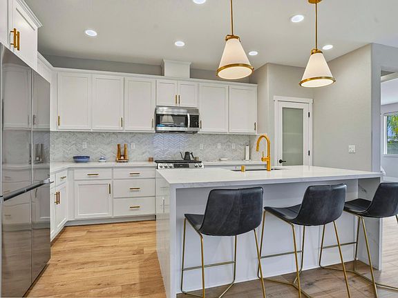 Beautiful viewStriking waterfall kitchen islandGenerous lot sizeLuxury flooringQuartz countertopsTile backsplashDesigner cabinetry