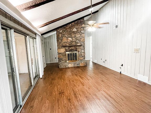 Fenced cove lotEat in kitchenSingle storyEnclosed patio roomWood and tile flooringFormal dining room