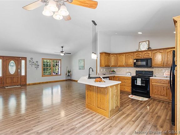 Curb appeal will have you in awe!! Manicured yard. New three dimensional one layer roof. Entering up the walkway view the brick facing front covered porch w/a darling swing. Through the front door into the open floor plan, you will find the large living-room with a vaulted ceiling. 3,000+ sq ft gorgeous home located on 15 acres, boasting of a hunter's paradise. Two ponds located on the property. This updated, modern home has 3 bedrooms & 3 bathrooms w/a finished walk out basement. All appliances stay with the home, including the washer & dryer. Freshly painted, new tile flooring in bathrooms on main level along with new flooring in the basement, high-end back splash that makes the kitchen pop. 30x40 detached garage with a bathroom, concrete flooring & electric. 2 car attached garage, back deck overlooking fenced in yard. Just darling. This home is the one!!!!