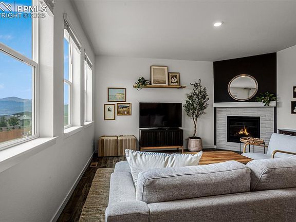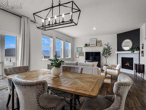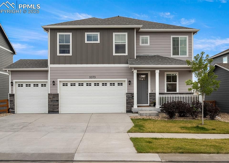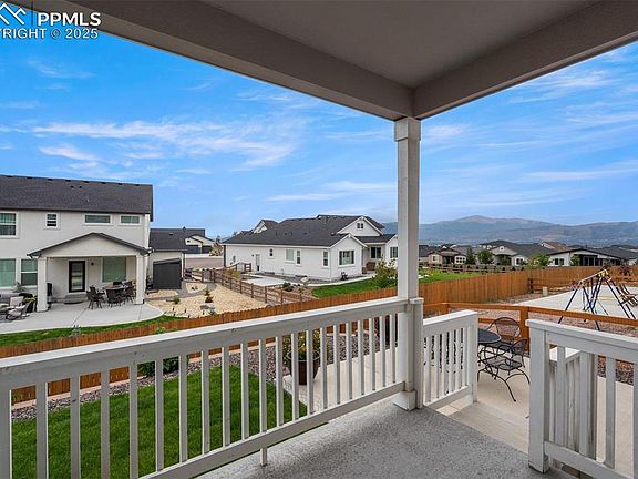 Welcome to this stunning two-story home in the desirable Bradley Ranch neighborhood, offering breathtaking views of Pikes Peak and access to top-rated District 20 schools. From the charming front porch, step inside to find an open-concept main level featuring LVP flooring throughout, seamlessly connecting the living, dining, and kitchen areas. The chef’s kitchen is complete with a gas cooktop, solid surface countertops, and ample cabinetry, flowing effortlessly into the spacious living room anchored by a cozy gas fireplace. A dedicated office provides the perfect work-from-home setup. Upstairs, enjoy a large loft area ideal for a second living space, playroom, or media room. The private primary suite boasts mountain views and a spa-like retreat, while secondary bedrooms offer comfort and flexibility. The unfinished basement provides a blank canvas for future expansion, whether you envision a home gym, theater, or additional bedrooms. Outdoor living is easy with an extended back patio, perfect for entertaining, a fully fenced yard, and plenty of room to relax and take in the Colorado sunshine. Additional highlights include a three-car garage, washer and dryer included, and thoughtful upgrades throughout. Don’t miss your chance to call this beautiful home yours—one of Colorado's Finest.