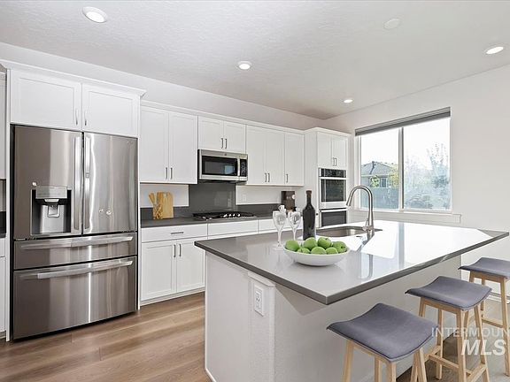 This stunning, newly built 4-bedroom, 2.5-bath home in South Meridian is ready for you. The thoughtful layout includes a downstairs office and an upstairs flex space. The kitchen is a true centerpiece, featuring double ovens, a gas range, a large island, and a spacious pantry. The outdoor space is just as impressive with a lush lawn, a big backyard, and a covered patio. The home's prime location provides easy access to a common area with a playground directly across the street, as well as nearby schools and amenities, and quick freeway access. Don't miss the opportunity to make this beautiful home yours.
