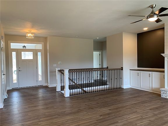 Gorgeous custom ranch home built by Renaud Peck in sought after Bear Run Subdivision ... Over 1/2 acre lot overlooking the pond and woods ... tons of curb appeal with stone pillars and accents. Great room with wall of windows, fireplace with raised hearth and stone accents flanked by built-ins and soft lighting. Custom kitchen with white cabinets, crown molding, quartz tops, oversized 9 foot island, tile backsplash, and all appliances. The master suite has sitting area with wall of windows, large walk-in closet, and bath with tile shower, double vanity, and linen closet. There's a first floor laundry, pantry, and mud room with built-in bench seat. Two more nice sized bedrooms and a full basement that is plumbed for a bath and could easily be finished. Don't miss the oversized 3-car garage with 9 foot doors and wide staircase to access the basement for all of your storage needs without going through the house. Driveway will be 3-car wide to the street for plenty of parking.