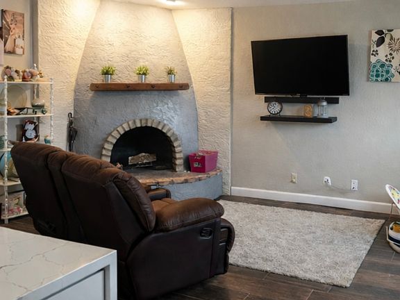 Inside, the home is sparkling clean with tile in all the right places and a thoughtfully arranged kitchen and dining area. A charming sliding glass door frames stunning mountain views, complemented by an additional dining space for flexibility and entertaining. The living room features a classic beehive fireplace, creating a warm and inviting atmosphere.