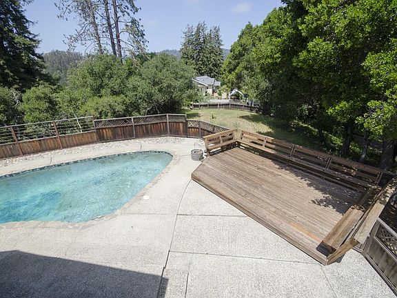 Well kept home on a beautiful knoll top setting in Aptos Hills sits well above Freedom Blvd. 5sunny acres with pool and privacy. Deck off the 2 upstairs bedrooms. One downstairs bedroom and bath. Tiled kitchen, breakfast bar and dining area. Entertain on the deck area overlooking the pool. Enjoy beautiful open beam ceilings and fireplace. Sunny usable area for animals, gardening or possible second unit. Relax in this warm home with an abundance of light and views from all windows.Double car garage/parking