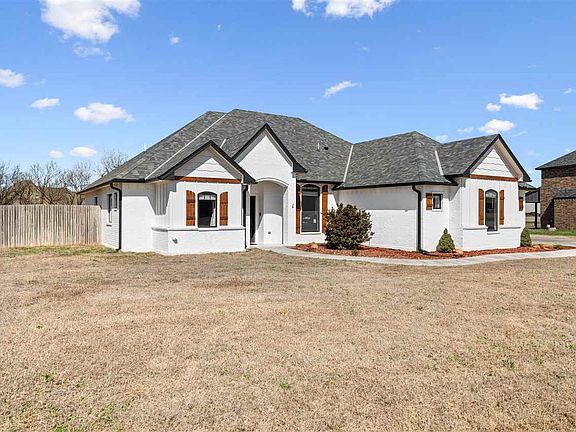Exquisite modern farmhouse style home in Wild Ridge Estates! This approx. 2100 square foot home has 4 bedrooms, 2 1/2 baths and 3 car garage. Modern finishes and an open floorplan. Natural gas log fireplace, cooktop , heat and hot water heater for energy savings. This home also has an oversized patio, privacy fenced yard, storm cellar and full sprinkler system. Carpet is new and only in the bedrooms. A new roof is to be put on prior to closing. Owner has maintained the service agreement for the septic system. Give listing agent, Julie Bridges, Realtor with RE/MAX Professionals a call at 580 695-3883 to see it in person!