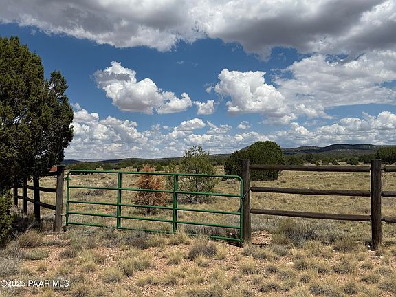 Sierra Verde Ranch - Seligman, ArizonaDiscover the wide-open beauty of Northern Arizona on this fully fenced 36 acre ranch property with expansive mountain views and valleys. Light rolling hills with a topo of Junipers and Pinon Pines. Ideal for those seeking privacy, recreation, or ranch living. With 7600 linear feet of log pole fencing installed, 3 semi loads to be exact, it is ready for you to bring your livestock. Two separate large pastures and a 24' wide x 900' long driveway. Room for so much more!Build your own arenas, barns, round pens and your dream home. Property has a 2500 gallon water tank and a 20' steel storage container to safely keep your tack, tools or ranch equipment. This parcel borders state trust land to the west so no one can build directly behind you. SVR POA benefits include access to 2 community wells and the roads are maintained when needed. Whether you're looking for a weekend retreat, hunting base, or full-time private ranch living, this property offers rural living with room to expand. Wide open skies provide amazing stargazing, the land supports both horses and cattle. Nearby mountain ranges and valleys surround this property with breathtaking scenery in every direction. Trails for riding and hiking abound in the area. Convenient location too! Property is located just north of Interstate 40 between the cities of Kingman AZ and Flagstaff AZ.
