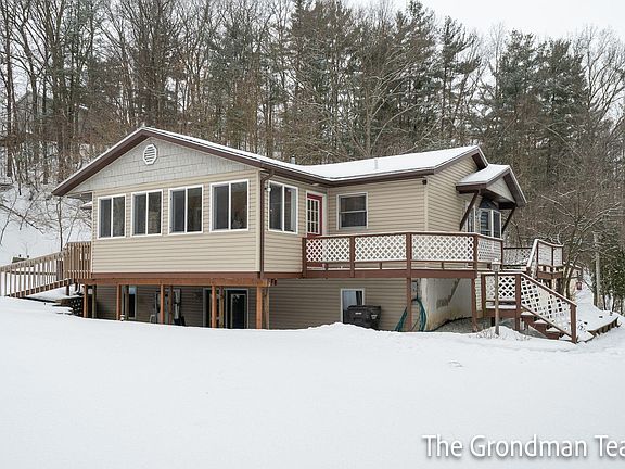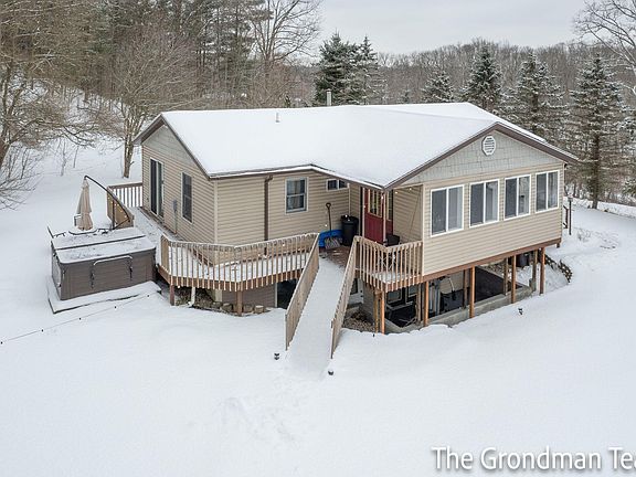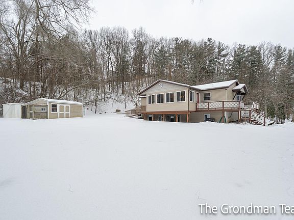 This 4 bedroom, 2 bath home offers over 2300 finished sq footage and 1.1 acres. Completely remodeled and ready for a new owner. The primary bedroom walks out to a private deck with no neighbors in sight! Enjoy tinkering around with your toys in the 1 stall unattached garage and the additional shed out back. Directly across the bridge is the boat launch for Grand River access. Very convenient location to everything Plainfield has to offer! New roof 2011, new furnace 2017, new air conditioner 2017. 4th bedroom does not have egress! 1 stall garage is a large shed on the property!