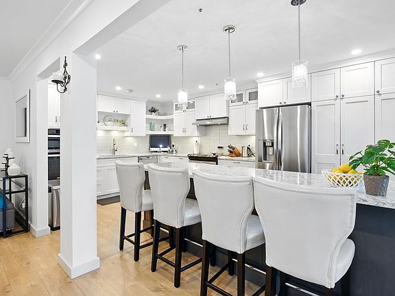 Renovated living spaceShowstopping kitchenDouble ovensSoft-close drawersBright open layoutLarge laundry roomTasteful modern finishes