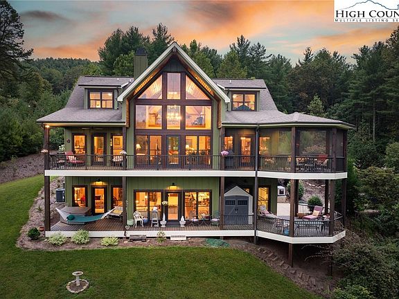 LESS THAN 30 MINUTES AWAY FROM DOWNTOWN BLOWING ROCK! This stunning custom home, crafted by Shaw Custom Builders, blends exceptional craftsmanship with superior construction for the ultimate in mountain living. Built with 2x6 framing for strength, energy efficiency, and durability, the home features artisanal finishes and custom millwork, including elegant bullnose edges throughout for a refined, seamless aesthetic. Spanning over 4,000 square feet, the home boasts an open-concept layout with thoughtfully defined spaces and floor-to-ceiling windows that flood the interiors with natural light and frame the breathtaking views of The Coves Mountain River Club. On the main floor, the primary suite offers a luxurious retreat with a stunning spa-like bathroom and an expansive walk-in closet. The gourmet kitchen features pecan wood cabinets with their distinctive grain patterns, a walk-in pantry for ample storage, and beautiful finishes throughout, while the main floor laundry adds convenience to everyday living. Upstairs, two guest bedrooms with ensuite bathrooms flank a versatile loft area, great for a home office, reading nook, or creative retreat. The lower level is designed for fun and relaxation, with a family/recreation room for game nights or casual gatherings, another bedroom with ensuite bathroom, plus plenty of storage space to keep everything organized. Outdoor living shines with two levels of decks, including a screened-in upper deck for year-round enjoyment, all overlooking the beautiful Blue Ridge Mountain scenery. For outdoor enthusiasts, the home is just steps from trailheads leading directly to the Johns River, offering endless opportunities for hiking, fishing, and exploring nature. Best of all, it’s less than 5 miles from Wilson Creek, 40,000 acres of the Pisgah National Forest, an outdoor sportsman’s dream. Plus, you’re less than 30 minutes from Blowing Rock, Morganton, and Hickory and only 75 minutes from Charlotte International Airport, making this the perfect blend of luxury, adventure, and accessibility. Welcome Home!