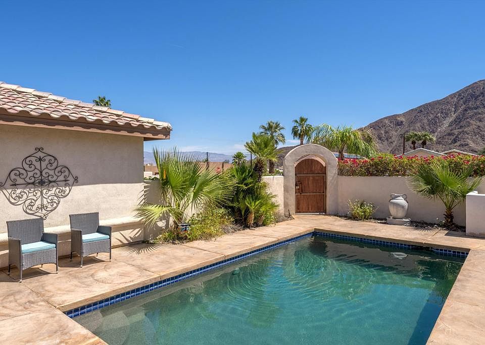This charming Turn Key furnished, solar heated pool home, with remodeled kitchen and baths, offers the perfect blend of tranquility and luxury while providing outstanding mountain views!As you step inside, you're greeted by an inviting living space adorned with natural light pouring in through large windows, accentuating the airy ambiance and highlighting the picturesque views of the surrounding landscape. The open floor plan seamlessly connects the living room, dining area, and kitchen, creating an ideal space for both relaxation and entertaining.The kitchen boasts modern appliances, sleek countertops, and ample storage, making meal preparation a delight. Whether you're hosting intimate gatherings or enjoying quiet family dinners, this space is sure to inspire culinary creativity.The sparkling pool is perfect for refreshing dips on warm days or soothing relaxation under the starlit sky. Lounge on the spacious patio, bask in the desert sun, and soak in the breathtaking vistas of the Santa Rosa Mountains stretching out before you.Conveniently located near hiking trails, golf courses, shopping, and dining, this home offers the perfect blend of serenity and convenience. Whether you're seeking a weekend getaway or a year-round retreat, this La Quinta Cove gem is sure to exceed your expectations.