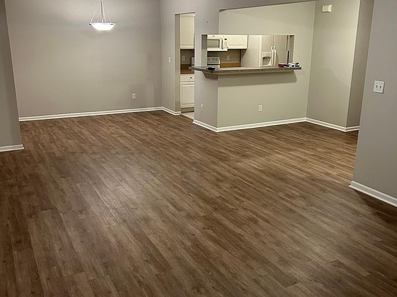 Neutral paintCounter seatingSeparate dining areaGallery kitchenVinyl floors