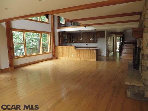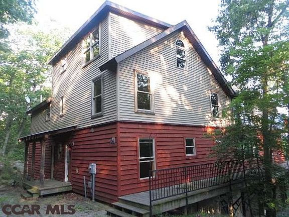 Great mountain view from several rooms and deck. Formerly used as a B & B "Inn on the Sky". 3 fireplaces (2 interior,1 exterior)Geothermal heat system, spacious deck & finished daylight basement. Options abound! Some repairs needed. Sold "AS-IS" Bank owned. Small cabin @ 500 Brush Mtn Road (Poor Condition) is on this property!