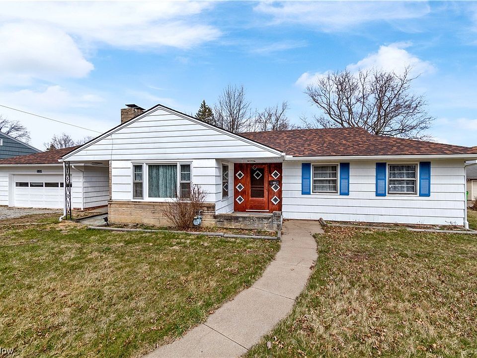 One floor living with retro charm! This 3 bedroom 1.5 bath home offers plenty of space to spread out. The spacious open living room features a large picture window and a beautiful fireplace. The kitchen is large and is where the character of the original design can be found. Metal cabinets and groovy flooring give this home a unique vibe. Traveling down the hall you will find the full bath with new surround and 2 additional bedrooms with hardwood floors. The half bath is just off the kitchen. Outside leading to the two car garage offers a covered walkway with plenty of space to add patio furniture. The backyard is perfect for outdoor entertaining at almost a half an acre of land. What about the updates? I'm so glad you asked! The roof is new in 2021, New gutters 2021, New electric service and panel 2023, new sump pump 2021. This glorious ranch is conveniently located near everything including the prestigious Alliance Country Club. Schedule your showing today!