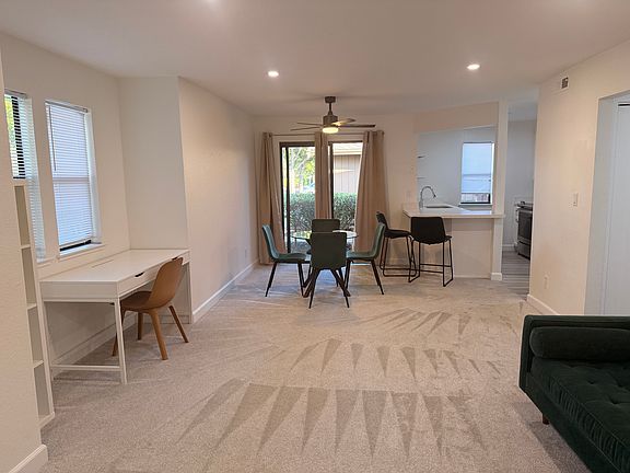 This newly remodeled ground-floor end unit offers a bright, open layout with two patios, brand-new stainless-steel appliances, quartz counters, and stylish touches throughout. Enjoy a sunny bonus alcove perfect for your home office with an enclosed private patio ideal for relaxing or entertaining. The home includes in-unit laundry, assigned carport parking, and extra storage in a peaceful, tree-lined community steps from Braly Park, Apple, and Downtown Sunnyvale. Small pets are welcome with a deposit and a monthly pet fee. Furniture can be included upon request or removed entirely. Live minutes from shopping, dining, and transit, and experience the best of Silicon Valley living with the space, style, and privacy you deserve.