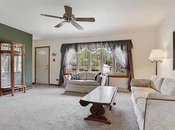 MINT CONDITION RANCH W FINISHED BASEMENT! Beautiful, move-in ready 2 BR (possibly 3 bedroom) home with over 2,200 finished sq feet of living space, on a quiet street in town Crete, just 2 houses from the park! Previously a 3 BR home, wall was taken down to form a spacious master bedroom, including a large closet w/ custom built-ins! NEW CARPETING on the main level, with beautiful HARDWOOD underneath. Spacious eat in kitchen w/ oak cabinets, pantry w/ custom spice racks; all appliances stay. RETREAT TO THE FINISHED BASEMENT where options are limitless! HUGE, DRY "L-shaped" family room with drop ceiling/canned lighting. FINISHED BONUS ROOM could easily be a 3rd bedroom or home office as needed! Laundry room features a BONUS basement shower, & NEW water softener. ALL WINDOWS HAVE BEEN REPLACED w/ energy efficient vinyl clad windows. ROOF (12 yrs), Furnace/AC rebuilt in 2016. Attention mechanics or auto enthusiasts: 2.5 car detached garage! Bring your pickiest buyers, this home is FHA/VA ready!