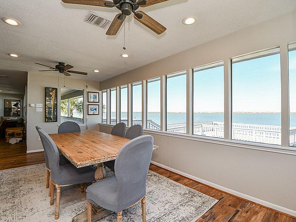 Stunning bayfront 3BR/3.5 bath home on Tiki Island offering breathtaking sunset views! Situated on 1½ lots, this fully furnished retreat features an open-concept living area with stainless steel appliances, a large kitchen island, wet bar with built-in ice maker, and electric fireplace. A large bayfront dining area that is ideal for family gatherings or sunset dinners with friends. Enjoy outdoor living on the spacious deck—perfect for entertaining by the bay. Built for comfort and peace of mind with storm shutters, fenced yard, and ground-level storage room, golf cart garage. The community is designed for boating, fishing, and outdoor recreation, with easy access to the open bay and nearby beaches. This move-in-ready waterfront gem combines elegance, functionality, and true coastal charm!