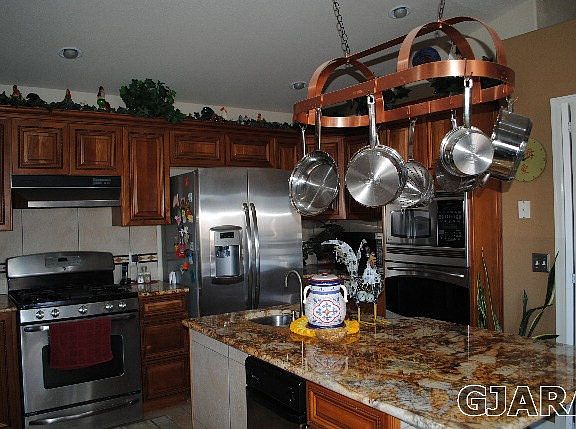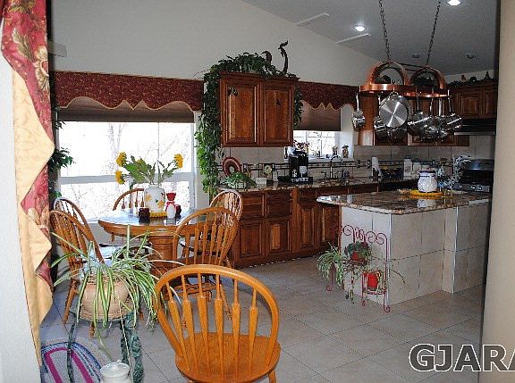 Enjoy the sparkling lights of the city from the fabulous covered deck off main level. Wooded grounds below with trail to Connected Lakes. Views of Mt Garfield & Grand Mesa. Covered patio below with hot tub. New cherry faced cabinets, appliances & granite approx 2008. New paint with two-tone colors. New hardwood floors in 2008 in living room, dining room, entry & master bedroom. 3 bedrooms & office on main level, 1 bedroom, family room with pellet stove, wet bar & extra guest room downstairs. Two hot water heaters. Hot tub is approx 10 years old.