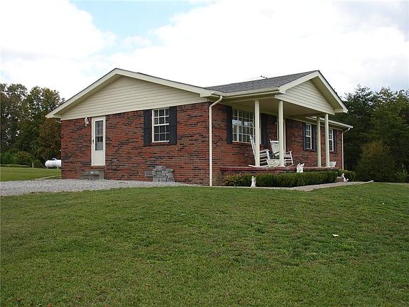 If you re looking for a private farm or a survival get away, this place is it. 84.7 acres of fields,pasture and woods fenced. Spring fed stocked pond, workshop,storage buildings, good well, all brick home, CHandA with a heat pump, LP gas wall heater for auxillary heat, a flu if you want to add a wood stove, great garden spot, grapes, berries,lots of fruit trees,3 black walnut trees,2 hazelnut trees, wildlife galore. Over 1300 ft. road frontage and appx 5 acres across the road for guaranteed privacy. See addendum for more details.