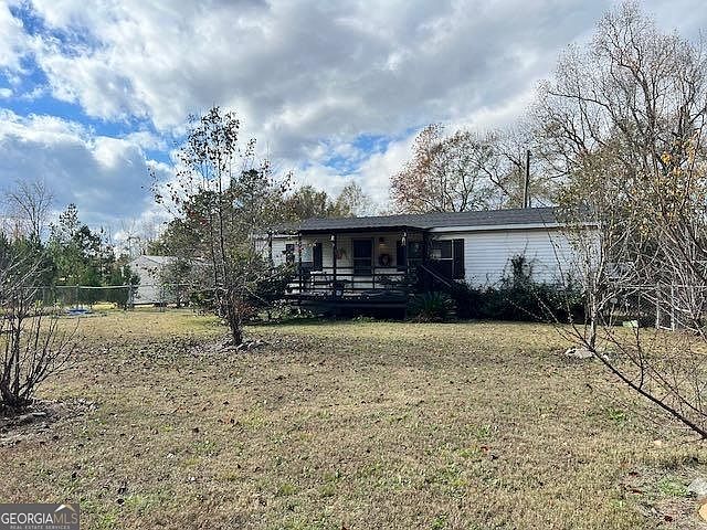The property at 538 Sheppard Rd in Tennille, GA, features a 940 sq ft mobile home on a 3.1-acre parcel. Enjoy the outdoors with the covered front and back porches. The landscape features 30 irrigated pecan trees, a garden area, and an above-ground pool for leisure. Two outbuildings provide additional storage or workspace. Inside, the mobile home boasts an open living, dining, and kitchen area, creating a welcoming atmosphere. With 2 bedrooms and 2 baths, this property blends comfort and rural living.