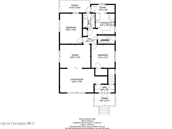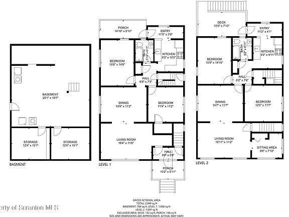 Stucco Up & Down Duplex situated in the Hill Section of Scranton in close proximity to Geisinger Medical Center, the University of Scranton and Nay Aug Park. 1st Floor Unit is 1068 Sq ft and comprised of 2 Bedrooms, 1 Bath, Living Room, Dining Room, Kitchen and Back Deck. 2nd Floor Unit is Identical in layout with the addition of a 9.8x7.10 Sunroom above front entry. Both Units have separate utilities. Tenants pay Electric, Water, Sewer and Gas. Landlord pays Taxes, Insurance and Garbage (which is now included in taxes)., Semi-Modern Kitchen: Y, Tax Information: Available, Kitchen: SemiMod, Baths: SemiMod, SqFt Fin - 3rd: 0.00, SqFt Fin - Main: 1068.00, SqFt Fin - 2nd: 1097.00, Additional Info: Well Maintained 2 Unit. Roof is 4 Years old. New Sidewalks,All Separate Utilities.