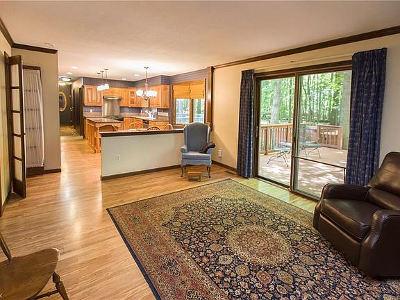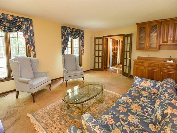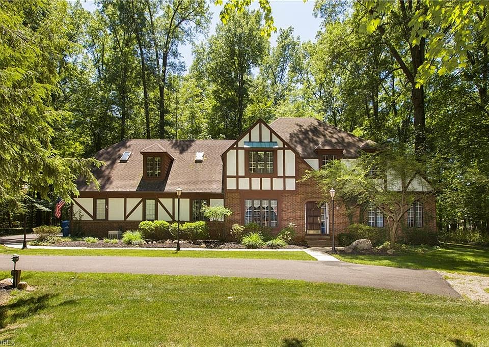 Prepare to be Moved!...Into this gracious tudor with 4+ acres on a private wooded lot in North Ridgeville! Beautiful wood floors in the 2 story foyer. Formal living and dining rooms set the stage for gatherings with crown molding & chair rail accents along with wet bar in living room! The beautifully updated eat-in kitchen features granite countertops, SS appliances, recessed lighting & convenient island with plenty of storage and shelving! The family room focal point is the full-width brick wood-burning fireplace with built-in bookshelves & sliding doors out to oversized deck. 1st floor den features built-in cabinets & closet with the potential to be an extra bedroom/guest room. Full bath with laundry room & sauna complete 1st floor. Upstairs youâll find the master bedroom with oversized walk-in closet and in-suite bath with double sinks. Two additional bedrooms with ceiling fans share a full bath. In addition, the 2nd floor features a spacious bonus room, which could be used as an in-law Suite, Master Bedroom, Family Room or more! Features vaulted ceilings, private entrance, full kitchen, skylights, ceiling fans & full bath with access to private deck. Enjoy the wildlife from the huge deck with hot tub or take a walk in the woods to the private gazebo with electricity. Large shed & 3 car garage provide plenty of room for yard toys. This property offers a private, peaceful sanctuary that feels a million miles away yet still so convenient to highways, shopping, parks & more.