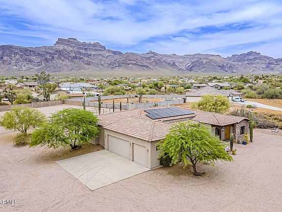 Don't miss this rare opportunity with unobstructed views of the Superstition Mountains! PRICED BELOW APPRAISAL! Estate boasts a spacious 3-bedroom, +Den/Office, 2.5-bath custom home situated on over 1.5 acres of prime horse property. Offering 2,594 sq ft of living space, this property features a fenced 240 X 110 arena—perfect for training, riding, or roping, and horse stalls. An unfinished tack room or potential casita with pluming offers additional flexibility for equestrian use or future guest space. With plenty of room to roam, this property is ideal for horse lovers and outdoor enthusiasts alike.