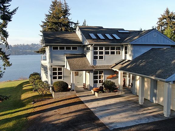 Custom Med Bank waterfront home .7 mile to downtown Freeland offers sweeping views & approximately 100' on Holmes Harbor...first time offered on market! 3500+ sq ft of living space. 3BR, 3BA w spacious open living area to cook's kitchen. 2 office spaces, one detached w 1/2 BA. 2 garage spaces + large/tall carport for RV-boat parking & projects & 320 sq foot workshop. Primary BR boasts glass sunroom to enjoy views, spacious BA w walk in shower & soaking tub, cedar sauna, walk in closet & work out room plus laundry! Shy 2 acre lot offers elbow room, keepsake views and the convenient location you have been dreaming of for your Whidbey Island dream home. Close to the Freeland Park for beach access & pier! OWNER FINANCING AVAILABLE!