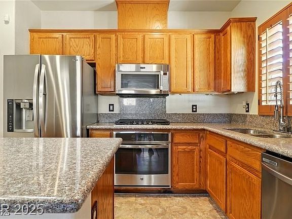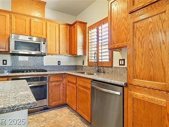Tucked into a quiet Las Vegas neighborhood, this move-in ready gem offers comfort, style, and smart living. Step inside to a bright, open floor plan with tile floors, recessed lighting, and plantation shutters throughout. The kitchen shines with granite countertops, stainless steel appliances, gas cooktop, and a center island perfect for everyday living or entertaining. Upstairs, the spacious primary suite features a walk-in closet and spa-like bath with dual sinks and oversized shower. Two additional bedrooms offer flexible space for guests or work-from-home life. Enjoy a private patio and low-maintenance yard—ideal for relaxing without the upkeep. The home also features an attached one-car garage, offering added storage and secure parking with direct entry into the home. Nestled near shopping, dining, and freeway access, this home is the perfect blend of ease and elegance. Welcome to 5380 Flowing Spring—your next chapter starts here.