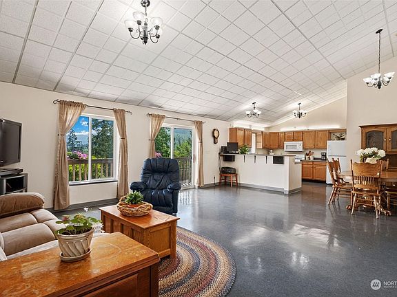 You will love the breathtaking sweeping views of the mountains, valley and river in your own private gated estate. House features open floor plan ,vaulted ceilings, in floor radiant heat, and primary bedroom with on-suite on the main floor. Well appointed kitchen is a delight to work in with large pantry, farm house stainless sink and gas range. Daylight basement could be a MIL Suite with large bedroom with dressing area and sink, full bath, family room, kitchenette , laundry , own entry and carport. Fenced gardens, fruit trees, blueberry bushes, grapes , two spacious green houses,24ft by 36ft shop , covered RV parking, tree house, spacious deck, pond, walking trails, creek and privacy are all your to enjoy on this serene property.