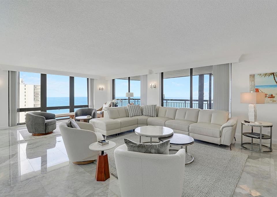 Experience a life of breathtaking luxury in this exceptional high-floor residence, where stunning panoramic views of both the Atlantic Ocean and Intracoastal Waterway create a living masterpiece from every window. This magnificent 3-bedroom, 3.5-bath condo features a kitchen with custom cabinetry and elegant granite, elegant bathrooms, and a sophisticated blend of plush carpeting and sleek marble flooring. With over 2,700 square feet of interior space, the home seamlessly connects to its sprawling 700-square-foot, wrap-around terraces, offering the perfect outdoor oasis. Residing in a prestigious 5-star building, you will also have access to world-class amenities including a heated pool, a fully equipped gym, a steam room, garage parking, and direct private beach access.