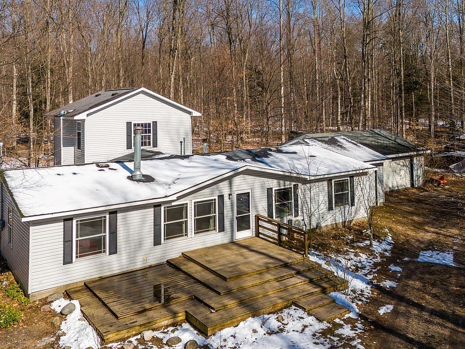 Escape to your own private oasis with frontage on the shores of Little Platte Lake, where the tranquil sounds of nature surround you. This rare gem offers nearly seven acres of pure Michigan beauty, with endless opportunities for relaxation and recreation. Located in the heart of Sleeping Bear Dunes National Lakeshore, this property is a nature lover's dream. Spend your days swimming, kayaking, or cruising on the pontoon, and your evenings listening to the loons and watching the eagles soar overhead. The manufactured home on the property is just waiting for your personal touch, with an unfinished stick-built addition that is the perfect blank canvas for your up-north renovation plans. With ample storage space in the attached and detached garages, you'll have plenty of room for all your outdoor gear. Don't miss your chance to own a piece of paradise in this idyllic setting. Whether you're looking for a year-round residence or a seasonal retreat, this property has everything you need to enjoy the best of Pure Michigan living.