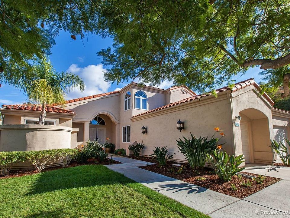 Popular Senterra Elite floor plan, featuring first level master suite with fireplace and remodeled master bath. Secondary bedroom on first floor ideal for office or gym. Upgrades include, neutral carpet, stone flooring, built-in bookcases and plantation shutters. Kitchen boasts stainless steel appliances and breakfast nook opens to inviting covered patio and lush backyard setting. The beautiful front yard adjoins vast community open space. The attached 3 car garage is complete with storage cabinets.