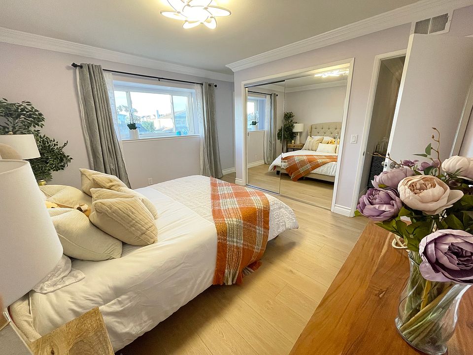 Mins walking to the Beach! Master Bed Room w/ private Bath room for rent, in a single family house of 4 bed rooms / 3.5 bath rooms which is All Brand New Remodeled. Just finished Renovation, All Fresh! Located on a Great and Quiet Street in City of Huntington Beach, near Irvine, Seal Beach, Sunset Beach,Laguna Beach...Landlord provides furnitures if needed.