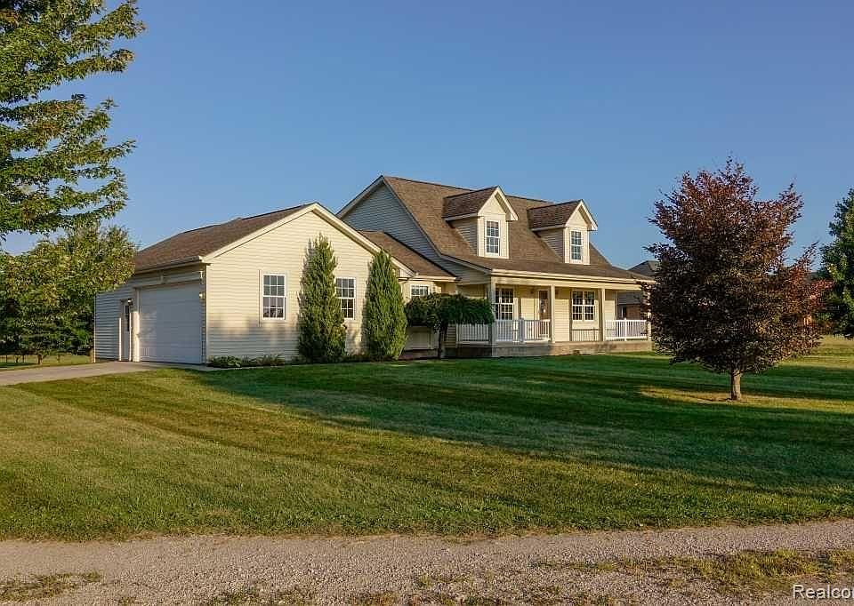 Beautiful 2000 sq ft Cape Cod with walkout basement on 2.7 acres is ready for new owners! This spacious property is located just outside the township limit, and features an attached 2.5 car garage, meticulously maintained landscaping, mature fruit trees, and deck that is great for watching deer in the evening! The home has 3 large bedrooms and 2.5 baths, with first floor master suite, first floor laundry, gas fireplace in the great room, and walk in closets! Hardwood or tile floors throughout, and oak kitchen cabinets. Ample closets and storage. Private well, septic. Natural gas. Gas appliances. Freshly painted June 2024. Immediate occupancy available.