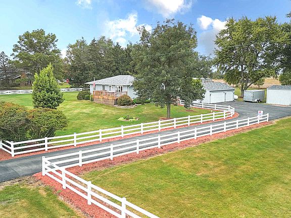 Welcome to this charming country home, nestled on a sprawling 2-Acre lot, offering a perfect blend of tranquility and family-friendly features. The home itself is warm and welcoming, with a spacious sunroom that floods with natural light, making it the perfect spot for morning coffee or evening relation. The fully finished basement adds a family room and 2 additional Bedrooms resulting in over 2000 square feet of space to roam, plus the Sunroom! With ample outdoor space for children to play, swim in the 24' heated pool, basketball, gardening, or outdoor entertaining, this property is the perfect family retreat. Enjoy the peaceful country setting while being minutes from modern amenities. Large Kitchen with generous cabinet and countertop space. Both Bathrooms have been nicely updated. Vinyl thermal pane windows with low E tint. Front deck is another relaxing spot to watch the sunrise. 50x28 Bonanza building is perfect for a business with its own Electric meter, concrete floor, 3 Phase electric, 2 finished rooms upstairs are insulated and are perfect office space and man cave. The 12' OHD is perfect for RV storage, workshop, hobby space, loft storage, metal roof is 5 years old. There's also a paint booth w/exhaust fan and 10 x 10 sliding door. 3 Car Detached Heated/Insulated garage is 24x30. 16x16 Shed w/8' door - concrete floor - loft - electric. House Roof - Garage Roof and 16x16 Shed Roof 2023, High Efficiency Furnace & Central Air 2021, High Eff. 50 Gallon Water heater 2017. Water softener is owned. Super clean and well-maintained property!